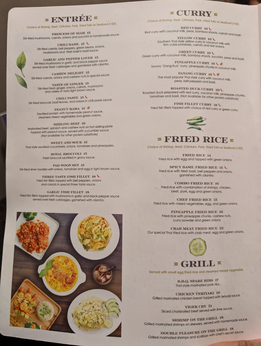 Customer reviews echo the sentiment of excellence throughout their dining experience. Kim Rogers raves about their Crab Fried Rice loaded with succulent crab, while Donna Yancy appreciates the beautiful ambiance paired with fantastic service. Kavitha Krishnan highlights the cozy feel and robust flavors, though she notes the sweetness of the Pad Thai—a dish she still enjoyed despite personal preference towards less sweetness.